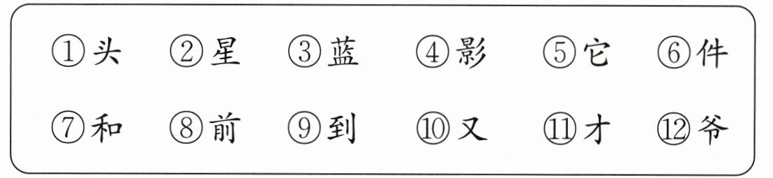 |①头|②星|③蓝|④影|⑤它|⑥件|⑦和|⑧前|⑨到|⑩又|⑪才|⑫爷|