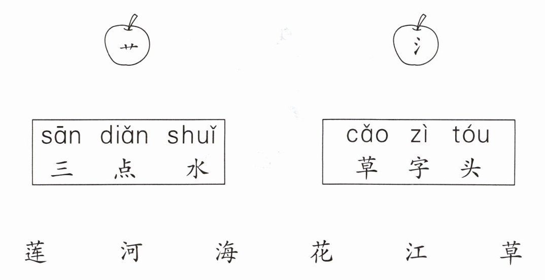 艹 氵 sān diǎn shuǐ cǎo zì tóu 三 点 水 草 字 头 莲 河 海 花 江 草