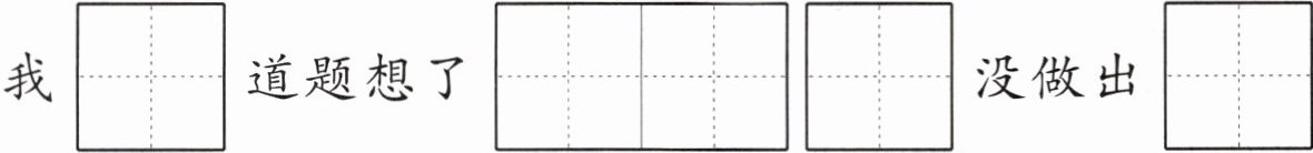 我$\begin{array}{|c|}\hline yǒu \\ \hline \end{array}\\ \hline 道题想了\begin{array}{|c|c|c|}\hline bàn & tiān & \\ \hline \end{array}\\ \hline $$\begin{array}{|c|}\hline yě \\ \hline \end{array}\\ \hline 没做出\begin{array}{|c|}\hline lái \\ \hline \end{array}\\ \hline $。