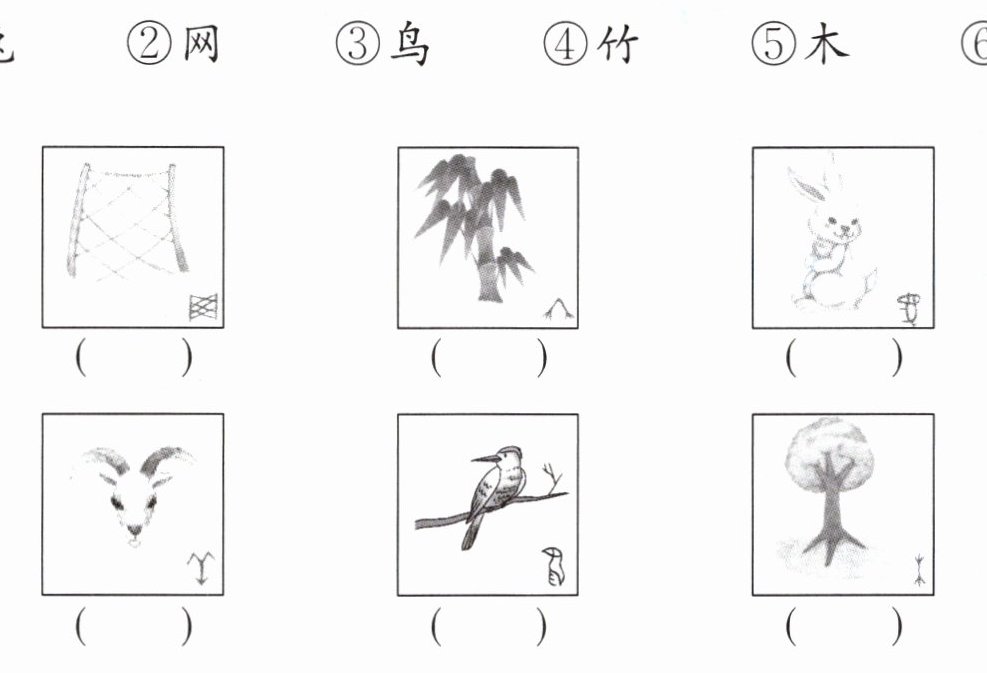 ①兔 ②网 ③鸟 ④竹 ⑤木 ⑥羊