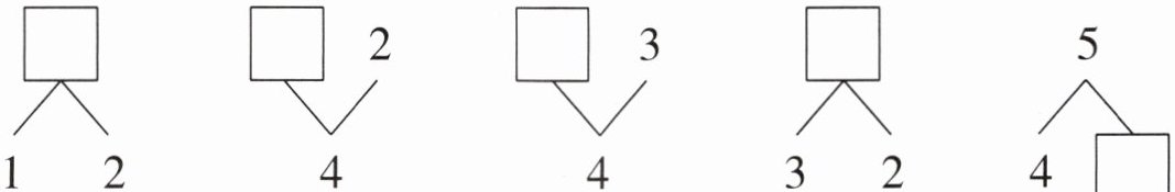 1+2=□ 5−4=□ 3+1=□ 3+2=□