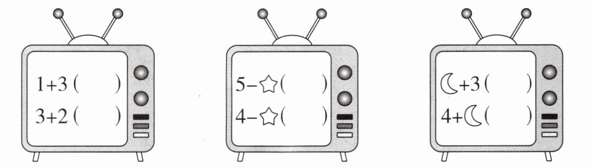 3. 比一比,在得数大的算式后面的( )里画“√”。(同一种图形表示同一个数字)