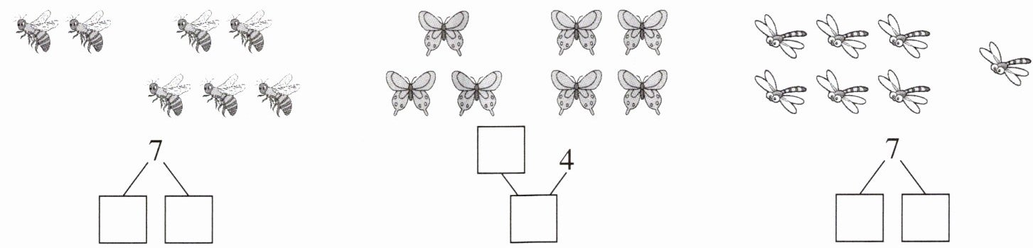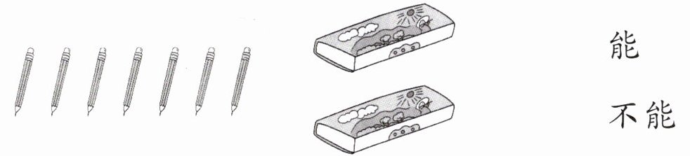 3. 把7支放进2个,每个里能放同样多的吗?圈出正确的答案。想一想,怎样就可以做到同样多?
