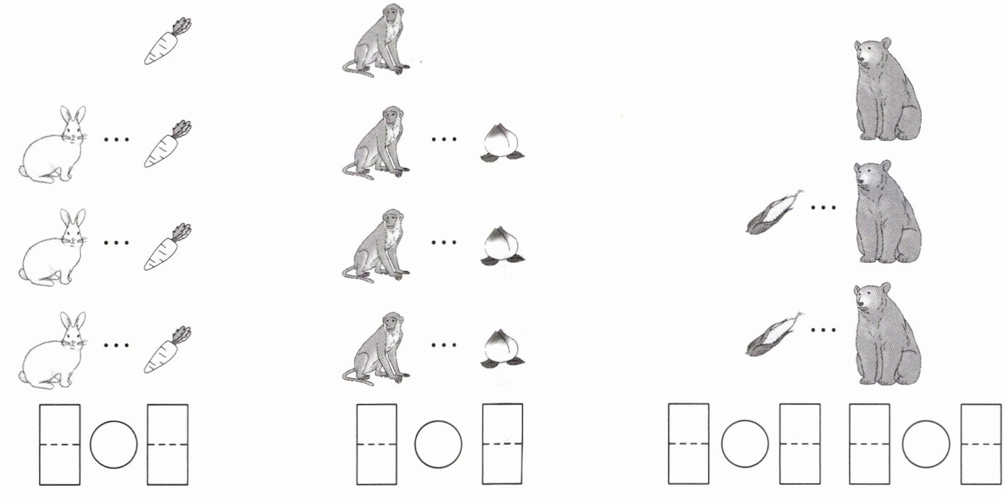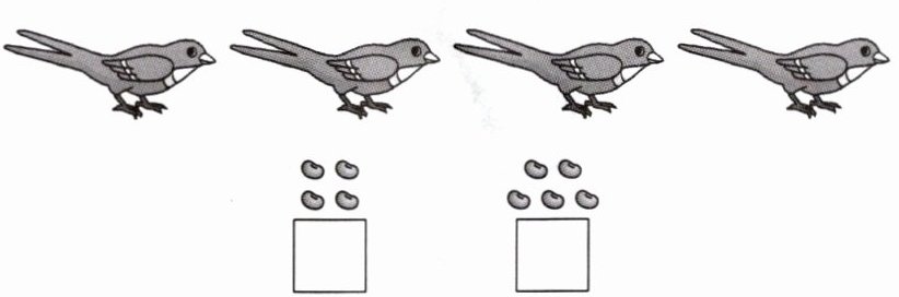 1. 每只小鸟吃一粒豆子,哪一堆正合适?在下面的$□$里画“√”。