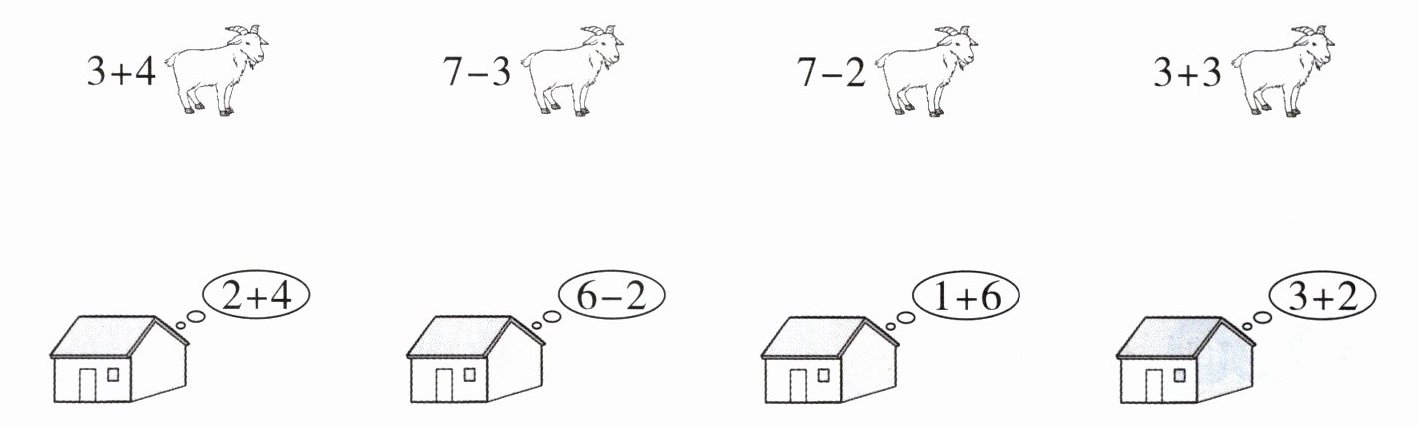 $3 + 4$ $7 - 3$ $7 - 2$ $3 + 3$