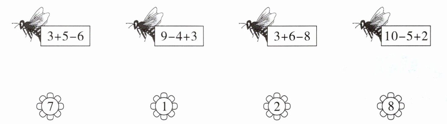 $\begin{array}{cccc}3+5-6 & 9-4+3 & 3+6-8 & 10-5+2 \\& & & \\7 & 1 & 2 & 8\end{array}$