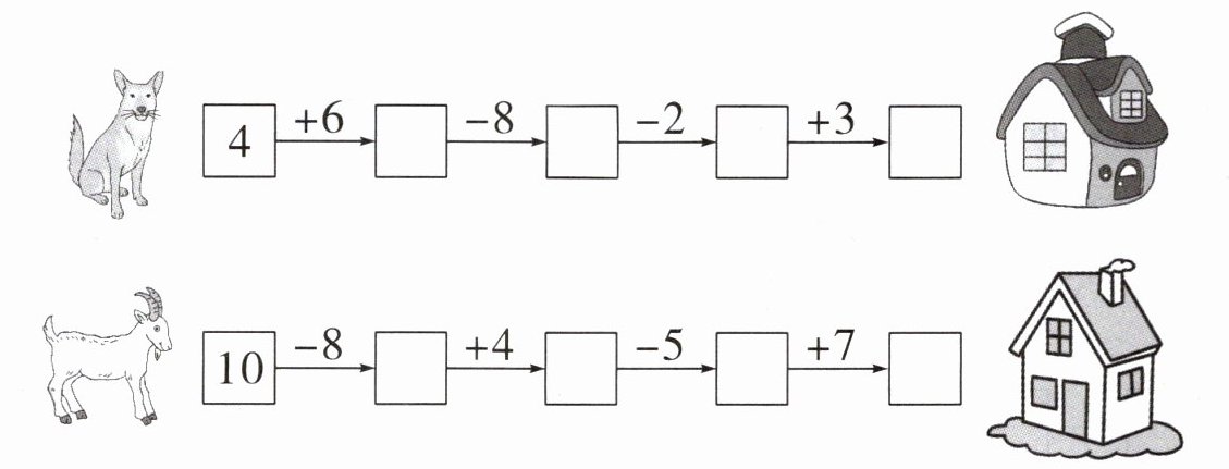 $\boxed{4}\xrightarrow{+6}□\xrightarrow{-8}□\xrightarrow{-2}□\xrightarrow{+3}□$