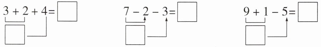 $□ ◯ □ ◯ □ = □$$(个)(4)$