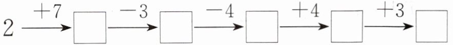 $2 \xrightarrow{+7} □ \xrightarrow{-3} □ \xrightarrow{-4} □ \xrightarrow{+4} □ \xrightarrow{+3} □$