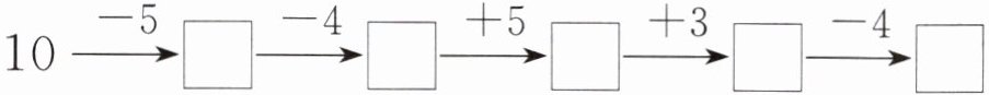 $10 \xrightarrow{-5} □ \xrightarrow{-4} □ \xrightarrow{+5} □ \xrightarrow{+3} □ \xrightarrow{-4} □$