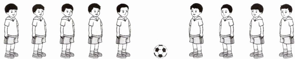 7. 左边和右边两队小朋友玩游戏。(填一填)