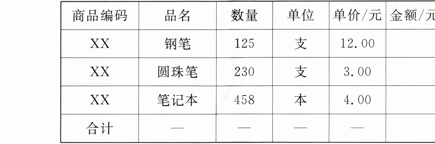 4. 下图是育才小学购买文具的一张收据,请填出相应的金额。先笔算,再用计算器验算一下。