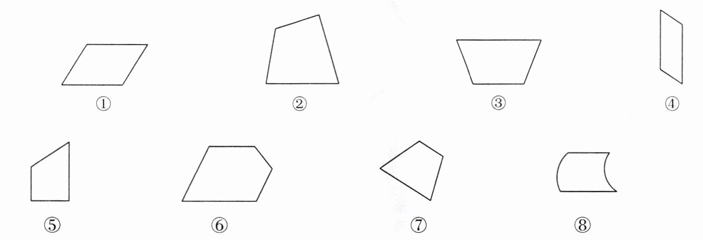 3. 在下面的每个图形中画一条线段,使它们成为两个梯形。