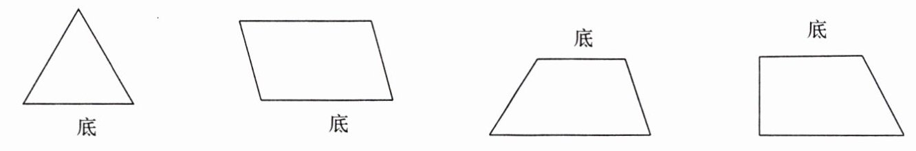 在右侧的图形(由一个长方形和三角形组成)中,从长方形上边一点(非顶点)画一条线到三角形斜边的一点,将图形分成两个梯形。