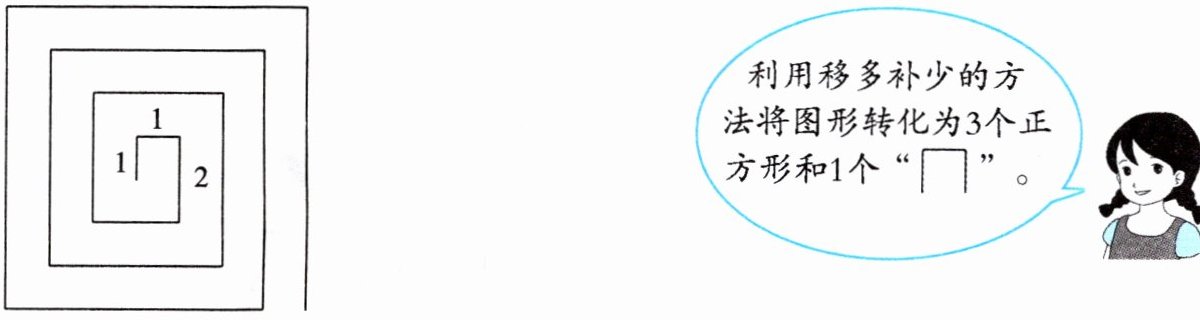 利用移多补少的方法将图形转化为 3 个正方形和 1 个“ ”。