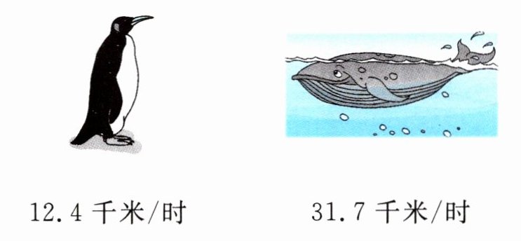 4. 蓝鲸的速度约是企鹅的多少倍?(得数保留整数。)
