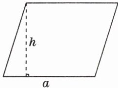 (3)如图所示,平行四边形的底为$a$,高为$h$,那么它的面积$S = ($ ),当$a = 4\mathrm{cm}$,$h = 3\mathrm{cm}$时,$S = ($ )$\mathrm{cm}^2$。