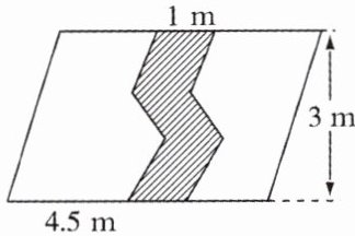 公园里有一块平行四边形的草坪,如图所示,草坪的底是$4.5\mathrm{m}$,高是$3\mathrm{m}$。草坪中间有一条小路,小路的宽是$1\mathrm{m}$,求种草部分的面积是多少。