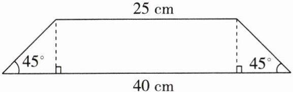 如图所示,等腰梯形的底角为 $45^{\circ}$,上底是 $25$ cm,下底是 $40$ cm,求这个梯形的面积。
