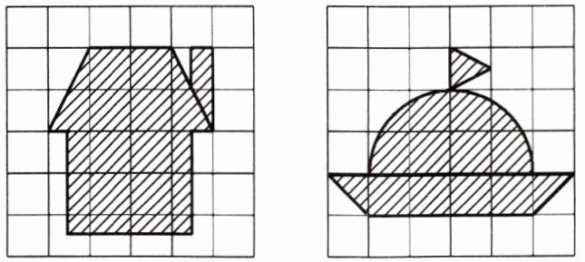 1. 估一估方格纸上图形的面积。(每个小方格的面积表示 $1\mathrm{cm}^{2}$。)