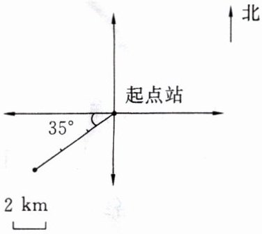(2)从终点站向正西方向行驶 6 km,再向西偏北 30°方向行驶 16 km,最后向东偏北 35°方向行驶 6 km 回到起点站。