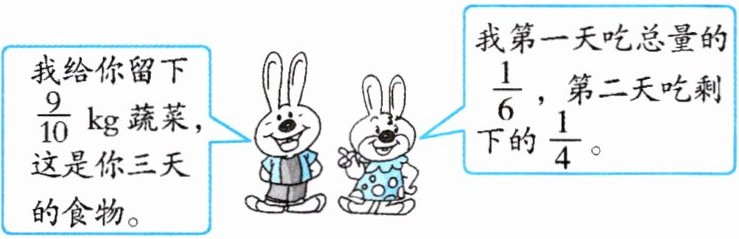 $3.\frac{9}{10}×[1-\frac{1}{6}-(1-\frac{1}{6})×\frac{1}{4}]=\frac{9}{16}(kg)$