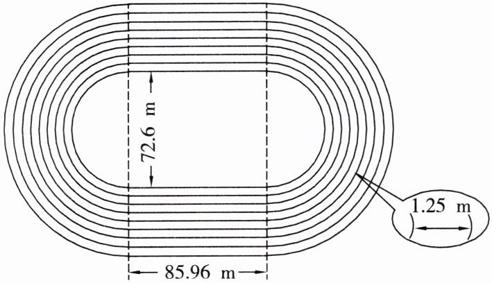 3. 体育场的跑道最里圈长度约为 $400$ m,如果让你画 $400$ m 赛跑的起跑线,你能确定每相邻两条起跑线相差多少米吗?