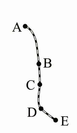 (3)一高速列车从 $A$ 站出发去往 $E$ 站,它行驶了 $700$ 千米,在图上用 $\triangle$ 标出它的大概位置。