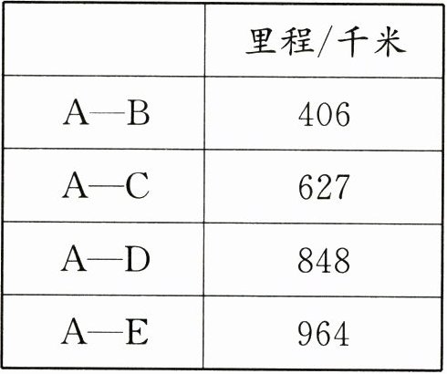 3. 下面是 $A-E$ 沿线部分站点的高铁里程表。