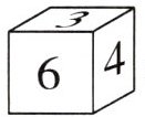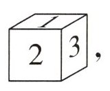 下面的魔方的六个面分别贴上了数字1~6(每个面一个数字,不重复)。小明第一次看到了,
