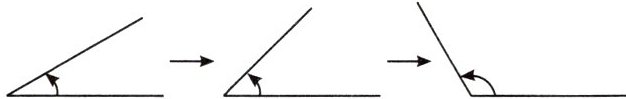 一、做一个活动角,照样子把这个角由小变大,你有什么发现?