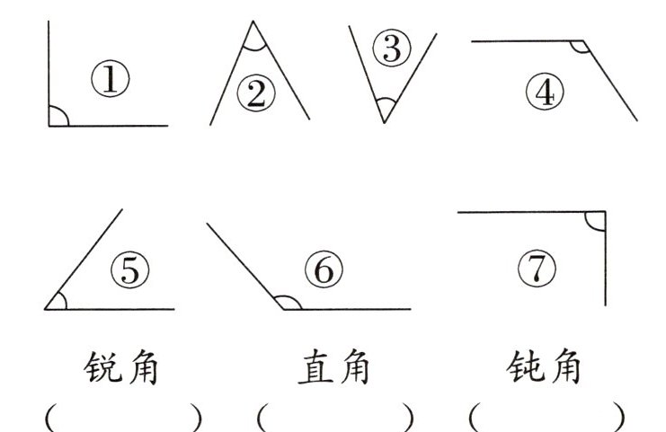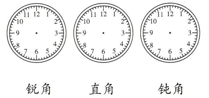 钝角:4(或5、7、8等)时整,时针指向4,分针指向12(画图时,时针较短按较大角度指向4,分针水平指向12)。