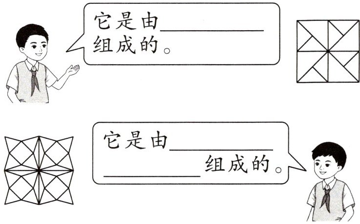 三、欣赏并说一说这些图案分别是由哪些图形组成的。