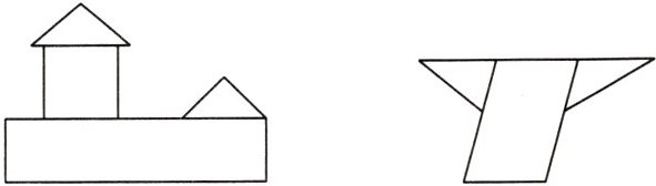 左图:将上面的三角形涂一种颜色,下面的长方形涂一种颜色(或中间的多边形涂一种颜色等其他合理情况);