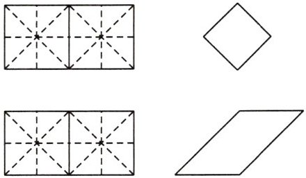 右图:将左面的三角形涂一种颜色,右面的两个三角形组成的平行四边形涂一种颜色(或上面的小三角形涂一种颜色等其他合理情况)。