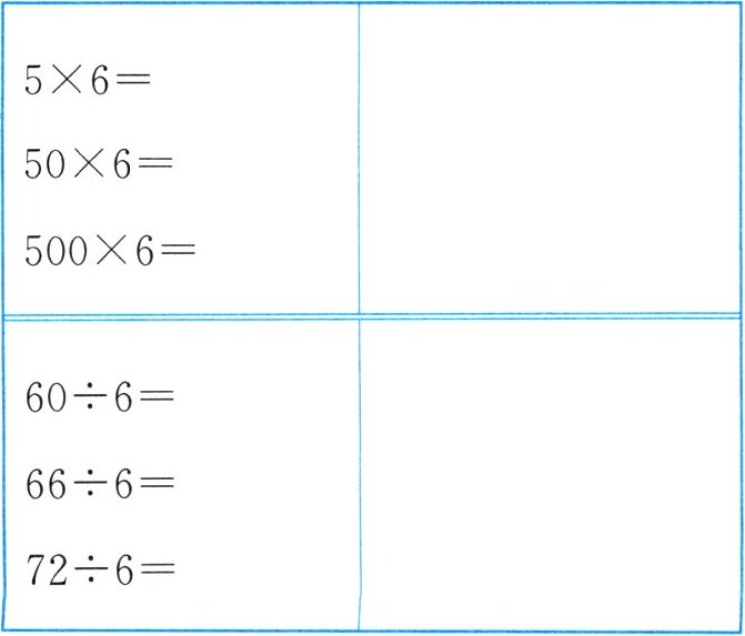 30 300 3000 4×7=28 40×7=280 400×7=2800 10 11 12 70÷7=10 77÷7=11 84÷7=12(两组算式不唯一)