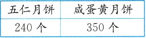 五仁月饼:240÷3=80(个) 咸蛋黄月饼:350÷5=70(个) 最多能配成70个大礼包。