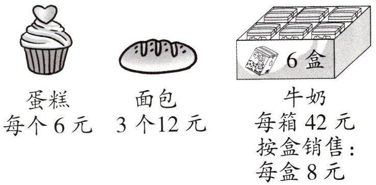 2. 小红买了 1 个面包和 1 个蛋糕,一共花了多少元?