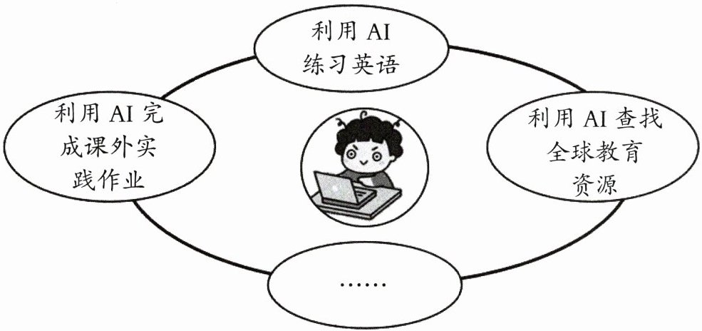 ○下图是当下一些同学应用 AI 技术的场景,请你进行补充。