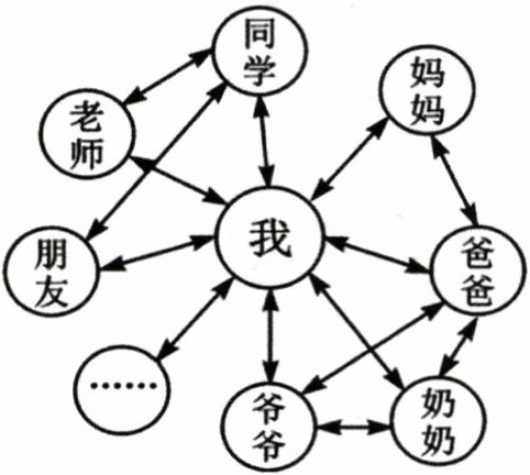 1. 下图是小天同学绘制的“我的社会关系网络图”,从中能得出的结论有( )。
