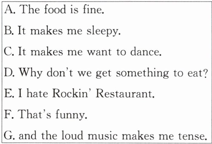 A: Yeah. Let’s go to Rockin’ Restaurant. I love their hamburgers.