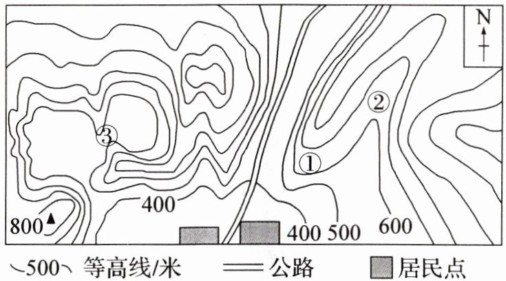 )。A. ②处等高线的弯曲部分向高处凸出,为山脊