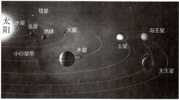 材料二 太阳是太阳系的中心天体,是一颗发光发热的恒星。太阳以电磁波的形式向外传递能量,称为太阳辐射。下图为太阳系示意图。
