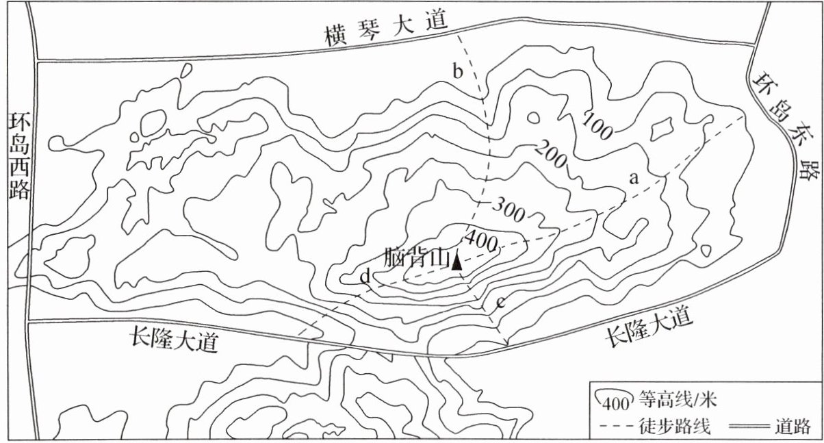 13. 脑背山是广东省珠海市横琴岛的最高峰,风景优美,深受徒步爱好者的青睐。下图为脑背山及其附近地区等高线地形图。读图,完成下列要求。
