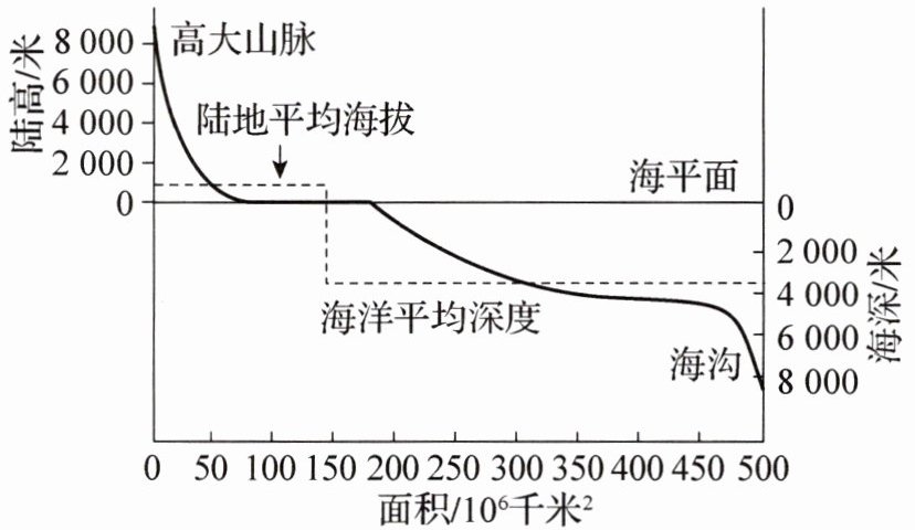 右图为地球表面海陆起伏曲线示意图,横坐标表示地球不同陆高与海深地区的面积。据此完成 10~11 题。