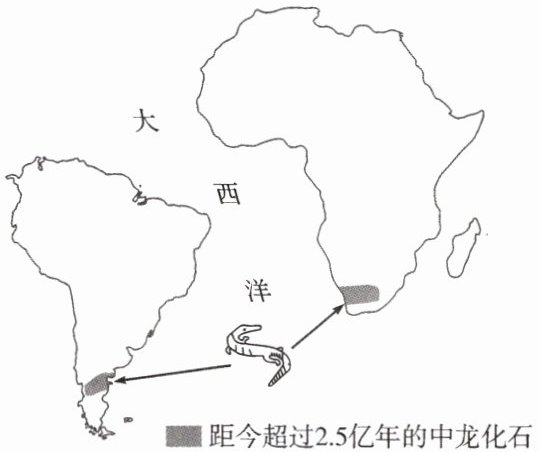 大西洋两岸都发现了距今超过2.5亿年的爬行类动物化石,而其他地区未曾发现。下图为大西洋两岸古生物的一致性示意图。读图,完成第5题。