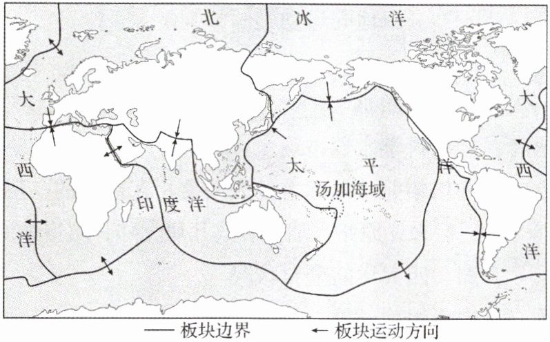 位于太平洋中的汤加王国是火山、地震多发区。2022 年 1 月 15 日,汤加境内海底火山发生猛烈喷发,并引发海啸,新西兰、日本、美国等国均发布了海啸警报。读图,完成 4~5 题。