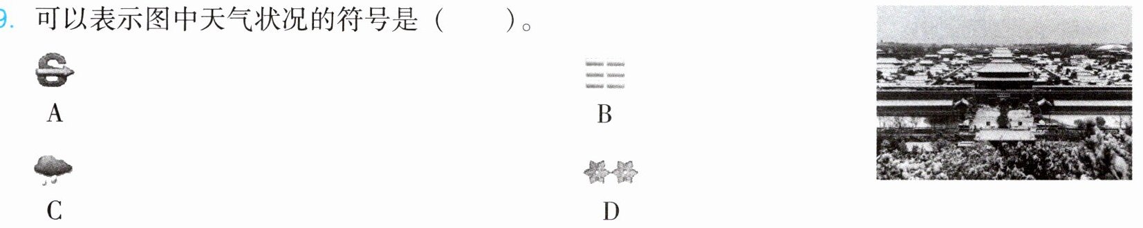 2021年11月4日至9日,我国大部分地区经历了寒潮。读北京故宫雪景图,完成9~10题。
