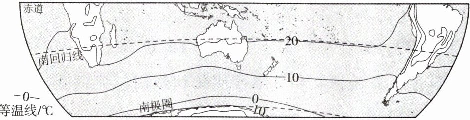 下图为南半球年平均气温的分布图。读图,完成8~9题。