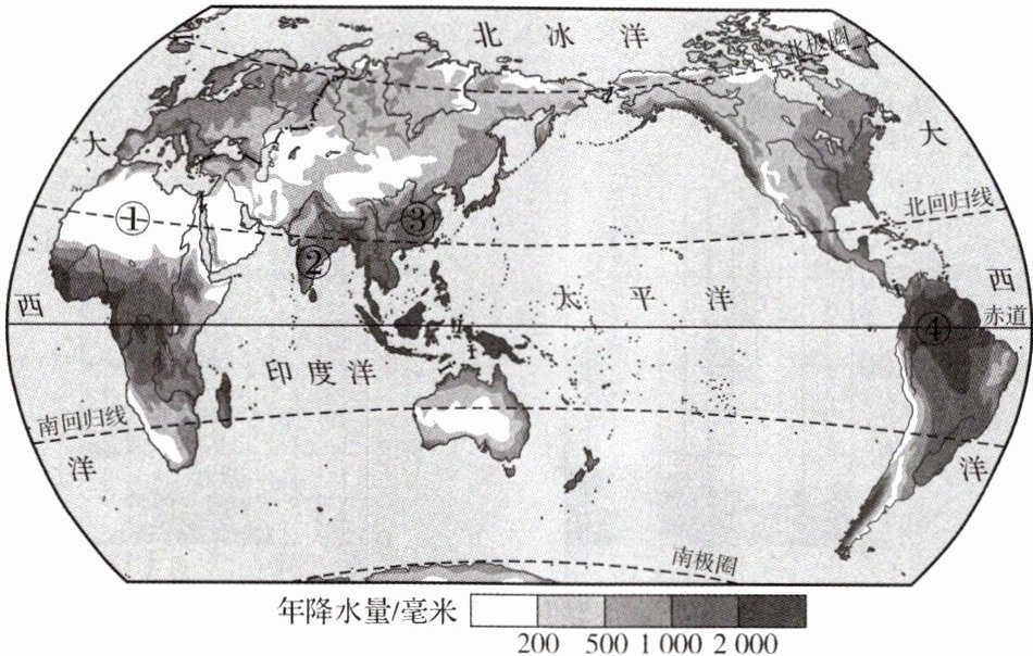 (2) 热带 北温带(3)新加坡 开罗 (4)500—1000毫米